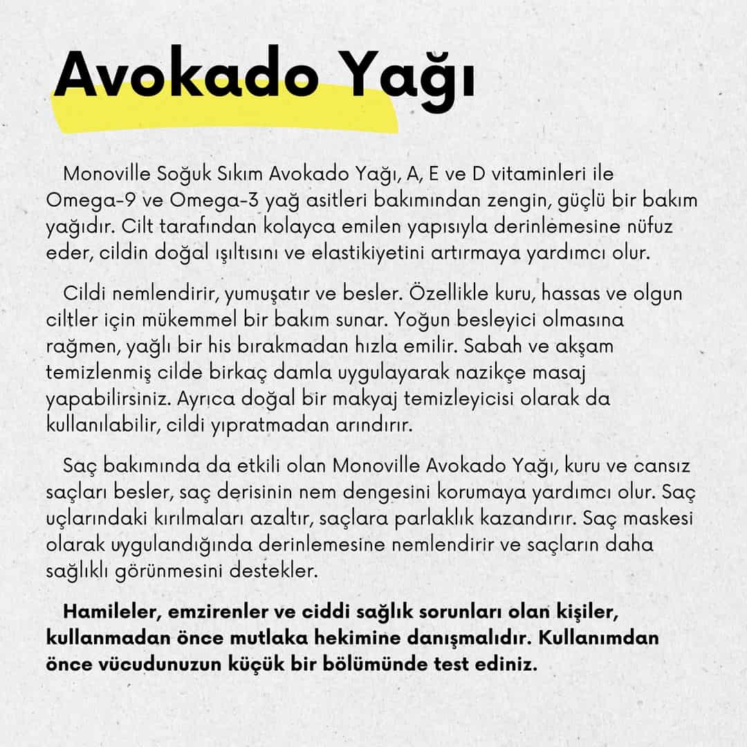 Avokado Yağı 30 ml Soğuk Sıkım %100 Saf ve Doğal (Avocado Oil)