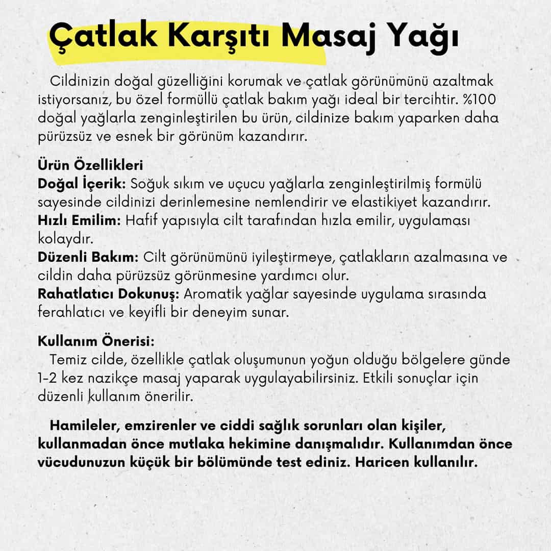 Çatlak Karşıtı Masaj Yağı 100 ml Cam Şişede %100 Doğal (Stretch Mark Oil)