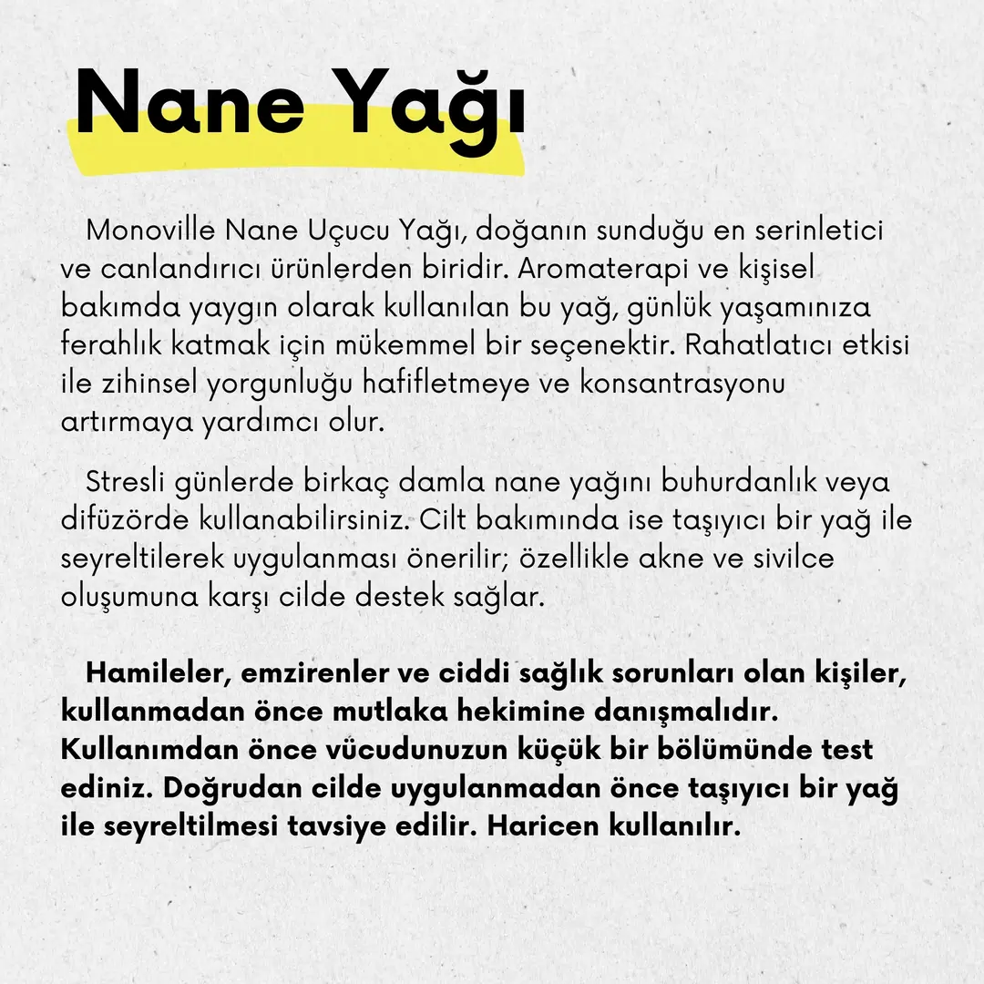 Nane Uçucu Yağı 10 ml %100 Saf ve Doğal (Peppermint Essantial Oil)